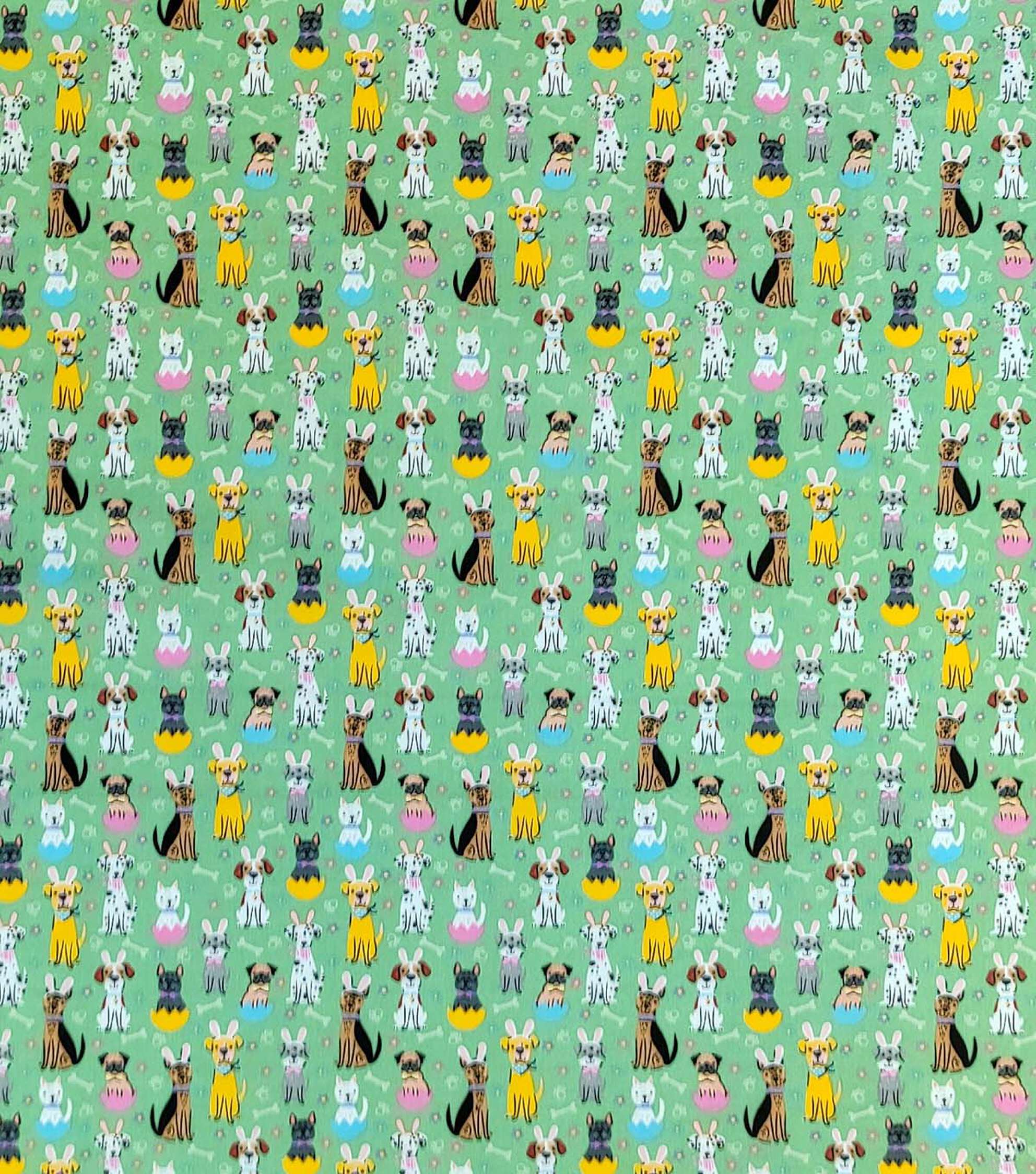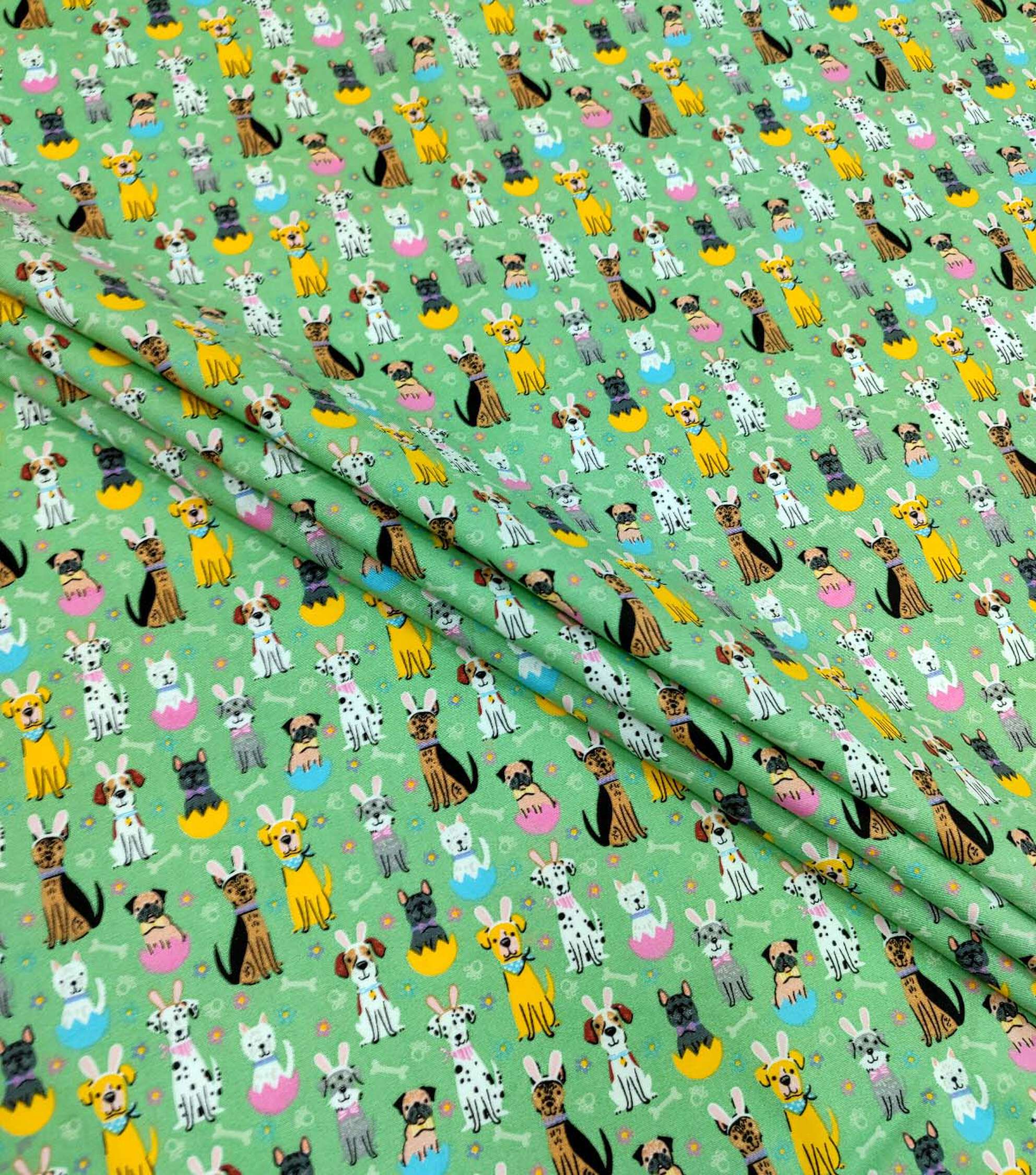 Easter Doggies on Green Easter Cotton Fabric