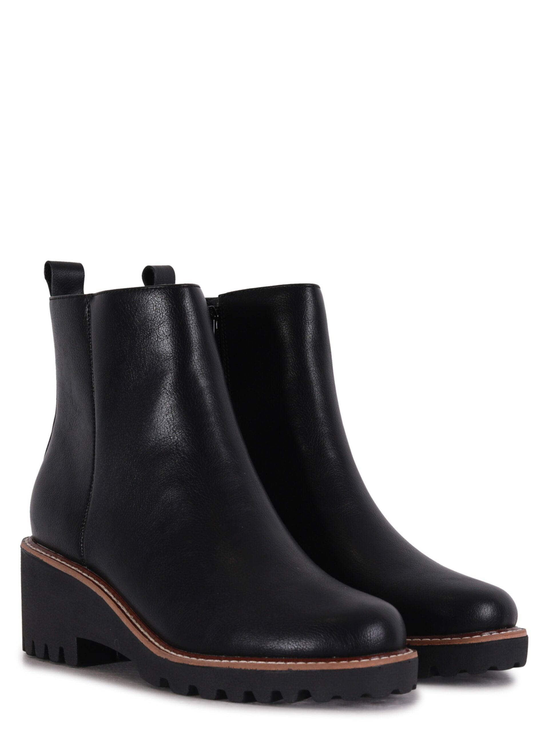 Wrapped in a luxe faux leather finish, these Chelsea boots feature a full length side-zip and boast a 6cm wedge sole for a style that’s chic and sophisticated.